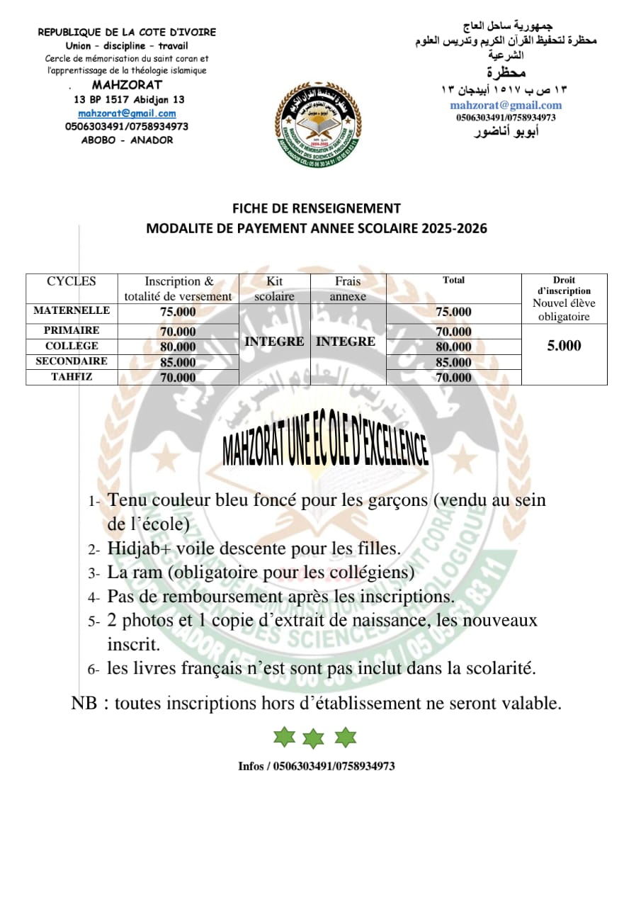 Le Directeur , Présentation de notre école Mahzoratation du Saint Coran, l’apprentissage rigoureux des sciences islamiques et la formation intellectuelle et morale de l’enfant. ???? Une école fondée sur le Coran et la Sunna Depuis plus de deux décennies, Mahzorat œuvre pour former une génération enracinée dans les valeurs de l’islam, équilibrée entre piét&